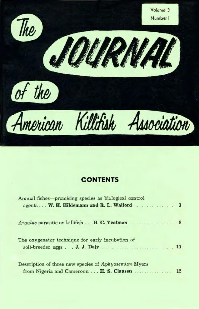 4. Description of three new species of Aphyosemion Myers from Nigeria and Cameroon H. S. Clausen p. 12