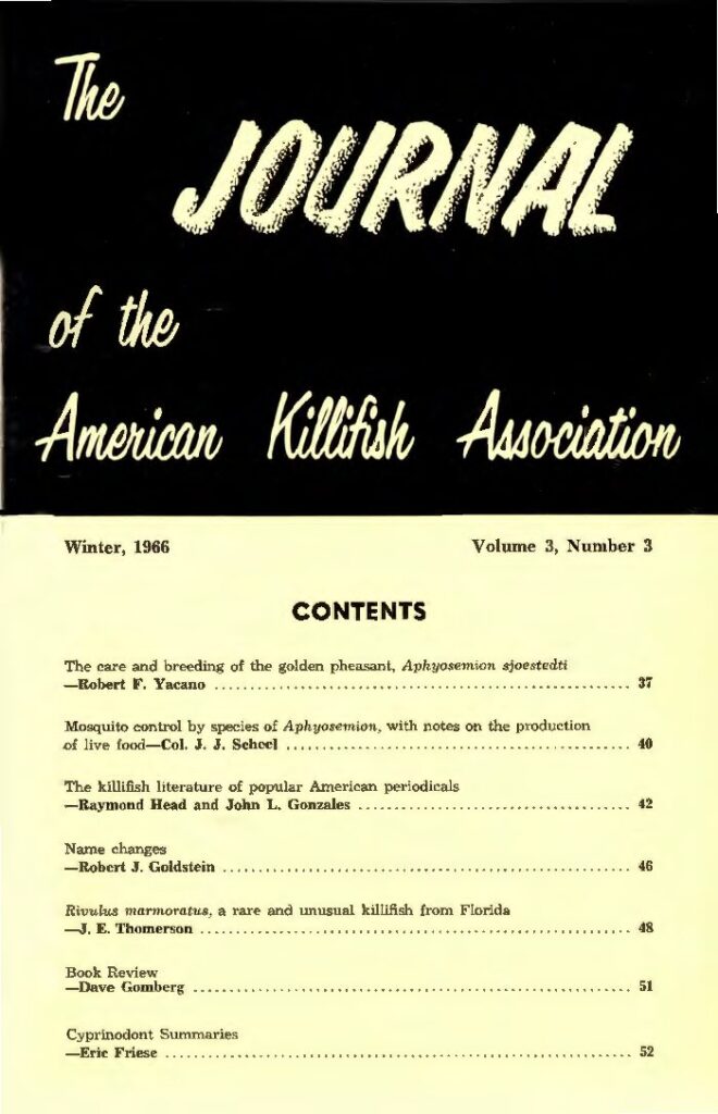 3. The killifish literature of popular American periodicals Raymond Head; John L. Gonzales p. 42