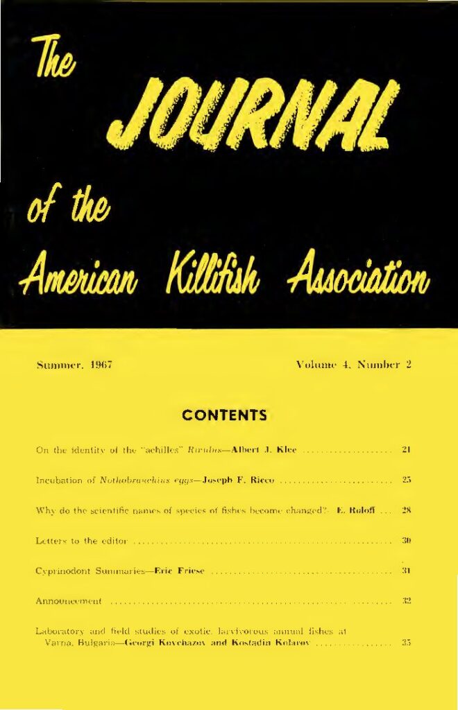 1. Chapter/Title Author Page Number On the identity of the "achilles" Rivulus Albert J. Klee p. 21