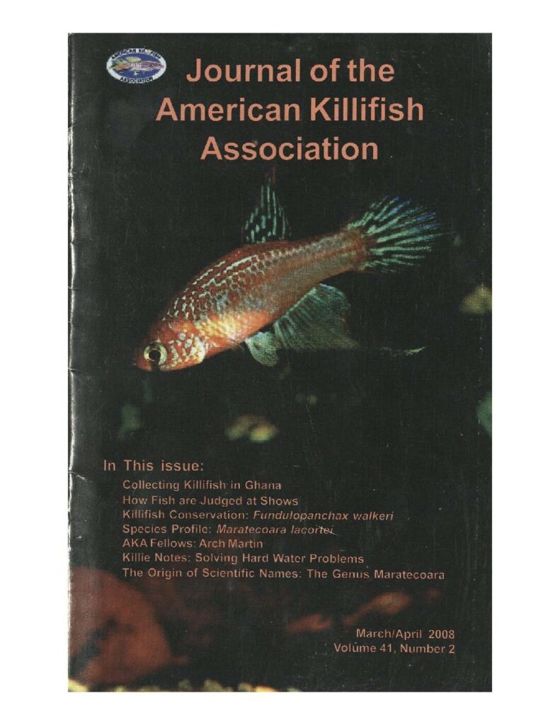 6. Killie Notes: Solving Hard Water problems George Caruso 58 The Origin of Scientific Names: The Genus Maratecoara Dr. Ken Lazara p. 62