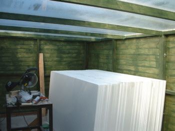 Roof assembly & polystyrene insulation ready to fit. A total of 48 - 8'x4' sheets 1" thick will be used. |