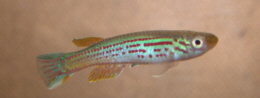 as pale blue). The red pigment in the caual fin is arranged in lines which 'flare out' to the fins end (some populations show this more than others). In halleri this red pigment is more heavy blotches. |