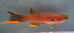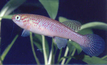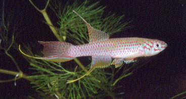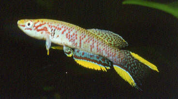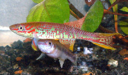 with a thin layer of peat & a lot of Java Fern. Diapause has been reported up to 15 months in unhatched embryo's. Growth rate is rapid with a size of 2 cm being attained after 30 days. Males have been known to start colouring up at 35 - 45 days. Females are able to produce eggs at 2 months of age. (BKA newsletter No.210, February 1983). Jaroslav Kadlec in BKA newsletter No.431, August