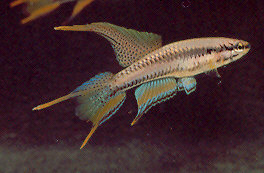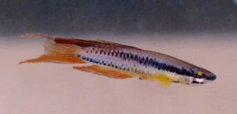 An obscure start. Ahl used four specimens to describe Fundulus bitaeniatus in 1924. These were obtained 'from aquarists & a professional breeder, Matte of Berlin' (ROTOW 1). Introduced as an aquarium fish in 1908 according to Arnold. These were said to have originated from Warri, western Niger Delta. This population was originally described under Fundulus bivittatus. History of the synonym Fundulopanchax multicolor Meinken 1930 Meinken described this species in 1930