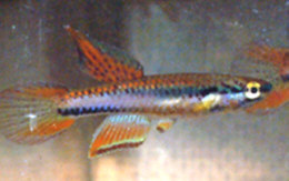 Lagos, Nigeria. History of the synonym Aphyosemion (Fundulopanchax) nigri Ahl 1935 Ahl described this species in 1935 from a single specimen reportedly collected from the mouth of the Niger River. This was given to Ahl by Siggelkow. The type specimen was kept in the Berlin Museum but was reportedly not examined by other zoologists. This specimen is presumed to have been lost now. The caudal fin was reported to be trilobate History of the synonym Fundulus rubrostictus Ahl 1928 Ahl described this sp. from 3 specimens