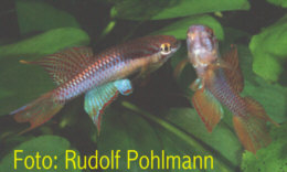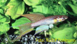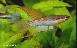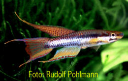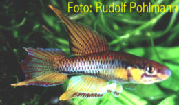 Benin - Patrick de Rham collected this population in water with a temperature of 30°C. Collected near Zagnanado, 100 metres from the coast & 50 kms from the Nigerian border. Rudolf Pohlmann noted his first fish had yellow anal fins but these came out blue in the young. Godomey, suburb of Cotonou - Slightly dark water & soft. Not lagoon type water. Water temp 30° C. Found near bankside vegetation. Sympatric sp. include Cichlid sp. Ijaguna River - A mistake in lierature is the spelling Ijagema. Also, this population may have been distributed as Ijebu Ode. Collected 18th December 1999 by T.Schulz on the road from Lagos through Epie & Yemoji towards Ijebu Ode, turn left to Ijaguna. The road crosses the Ijaguna River. From this road Ijebu Ode can be seen approx 1 km away. The road from Yemoji to Ijebu Ode and the freeway run on along the ridge.