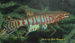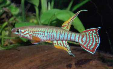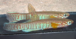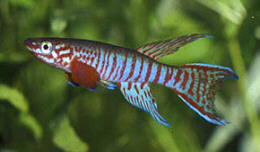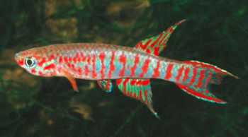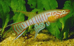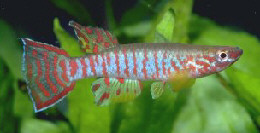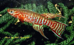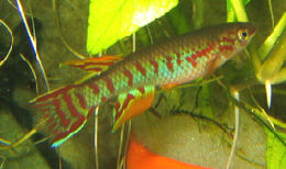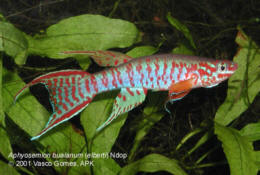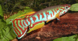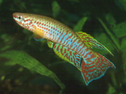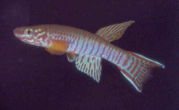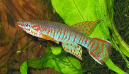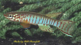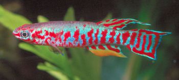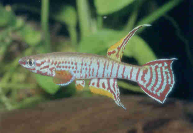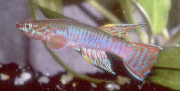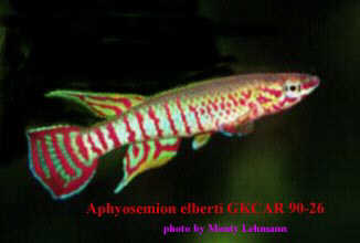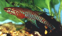 Ahl based his description on 3 fish collected from the 'Jade Plateau', Lebo-Fluss, eastern Cameroon. This area is located between the western part of the Logone-Mbéré drainage in the western area & the Bahr-Sara-Uam to the east. The southern range of this area reaches the Sanaga & Lobai Rivers. This is a water shed which seperates the Chad, Zaire & Sanaga drainages. These fish were caught by Dr.Elbert. The BKA received the then named A.rubrifasciatum as an exchange in 1967. The Diang population was caught by Vlamink in 1971. John Hughes a collector for the BKA in the early years sent to the UK a population he caught at Yelwa, a small hamlet 6 miles south of a small town called Maisamari on the Mambila Plateau. These were distributed in 1972. The Mambila population was imported to the UK by the Species Import Commitee in May/June 1973 & the summer of 1974 (July/August). These were collected from fairly fast flowing water. Matapit entered the BKA probably through Beryl Scates who received them from the DKG around 1978. History of the synonym Panchax tessmanni Ahl 1924 Ahl described this species from 2 specimens,