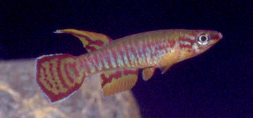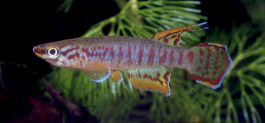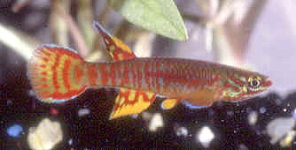 In 1966 Scheel collected them in wooded areas of the inland plateau of eastern Cameroon. In the 1960's Dr.Benigno Roman of Madrid received collections from Equatorial Guinea. Results of his studies were published in'Los Peces de Rio Muni'. Barcelona. 1971. p165. Mention is made in the book of a location 'Cuenca del Miyogo, afl Monyoga el 10/8/1966'. This means an area of Miyogo in a stream/water course of the Monyoga drainage. Known to be in the BKA in December 1966. These were sent by Leif Christensen of Denmark & were breeding at one & a half inches. They were described as having a 'yellow body with a pattern of reds & browns'. Also came into the UK through the BKA Species Import Committee late 1968 & June 1974. Collected by Roger Langdon north of Sangmelima (Cameroon) in 1971. Scheel collected at Lolodorf in 1974. Rod Roberts along with 7 Austrians & a Frenchman collected in Cameroon in July 1983 (K/N 228). Rod's group also comprised Ed Pürzl & Hubert Peturka. A population was caught at Febmimbang. This population was distributed in the UK in limited numbers. In January 1986 P.Wagner & R.Wendel found this species in Gabon for the first time. History of the synonymous A.jacobi. Jacob, in 1928, collected 4 specimens from the Lokundje River, Lolodorf, southern Cameroon. This locality is 440 metres above sea level. These were examined by Ahl & used to name the species Panchax jacobi. History of the synonymous A.jaundensis. Ahl described Panchax jaundensis in 1924 from a single female collected at Jaunde, east Cameroon. Holly studied the type material in 1930 & changed some of Ahl's data. History of the synonymous Panchax loboanus. Ahl, in 1924, used a single specimen collected by Schreiner at the upper reaches of the Lobo River, Sangmelima, southern Cameroon. In 1930 Holly re-examined the type specimen & changed some of the meristic data given by Ahl. History of the synonymous Panchax loloensis. Jacobs caught 4 specimens at Lolodorf, eastern Cameroon which Ahl used in 1928 to describe the species. Lolodork can be found on the Lokundje River north of Kribi & south of the Nyong River. Lolodorf is 440 metres above sea level. | ||||||||||||||||||||||||||||