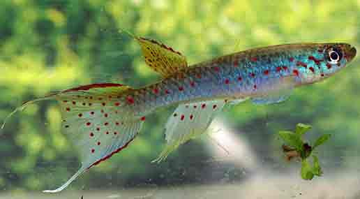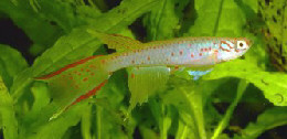 Both sp. are seperated geographically. A.polli has few spots on body & unpaired fins. Red outer margins to dorsal & top/bottom of caudal fin. |