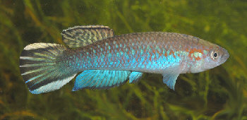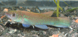 Prefers larger tanks with well oxygenated water. Eggs are found mostly in the lower areas of the tank according to some breeders & near the surface by others. . Scheel, in ROTOW 1 reports that the eggs 'develop & hatch without delay'. Reportedly not an easy species to breed. Incubation is variable. Reports quote hatching at 8 days in a water temperature of 70'F & 13 days at 76'F. Growth rate is quite fast with sexing out reported at around 6 months. Fry on hatching are quite large & capable of taking newly hatched brine shrimp. Males in breeding condition are said to display black colouration to the lower head area with the whole body becoming darker. Females display a dark oblong marking pattern down the sides. This pattern may be unique to this species. In BKA newsletter No.53, January 1970 Dick Armstrong reported that they take some time to colour up, but found them easy to spawn. Eggs were laid in top mops near the top & floating plants. Water incubation took around 10 days. The young grew very quickly with good feeding. It was noted that they appreciate water changes. A variety of water conditions are tolerated by this sp. from hard to soft although soft acid water shows the fish at their best. | ||||||