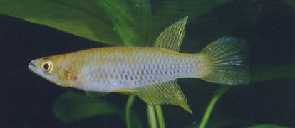 I only had this species once & found it difficult to breed, only laying a few eggs in mops. They hide a lot & a darkened tank suits them best. Reports suggest that the pairs will not harm eggs or fry in the breeding tank. Water incubation is 12-15 days. Fry will take newly hatched brine shrimp on hatching. Growing the fry is difficult (I didn't manage to raise any) with sexual maturity taking at least around 8 months. |