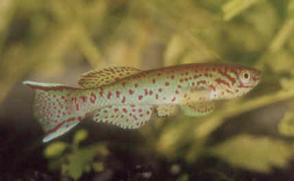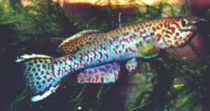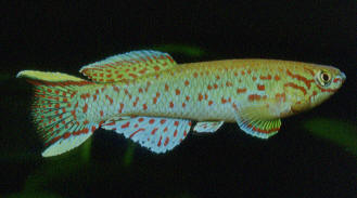 Anal fin shows the characteristics of Fp.gardneri gardneri with a spotted pattern without marginal & sub-marginal bands. Yellow & blue phases show a pale blue. | ||||||||