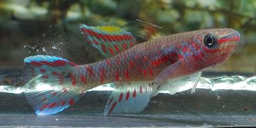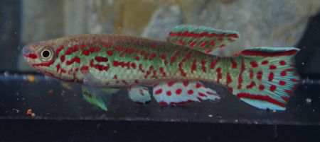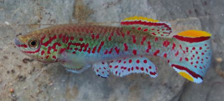 fish show an orange anal fin with few red spots & a black outer margin. When they first came in I said - 'It's possible this population will throw out different colour patterns in future generations'. This seems to be proving correct. All photos above from our original fish, no hybridisation. I would put variability quite high on captive bred fish. |
