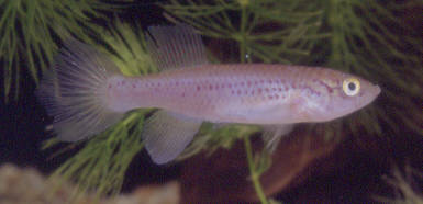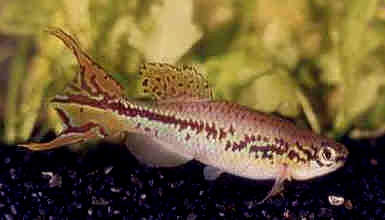 Collected eggs were stored in damp peat moss for 3 months at about 72°F. First signs of sexing I noticed around 2·5 cm with a dark horizontal line gradually becoming darker. This showed males coming through. At this stage these individuals would become decidedly more aggressive. Jaroslav Kadlec reported that young fry did not like a drop in temperature. Fry would refuse to eat & would be dead within days. He found they did best if raised at 22-23°C for the first 2-3 weeks & then raise the temperature to 24-27°C. BKA Journal 351, December 1994. | ||||||||||||