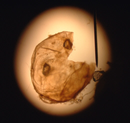 clumps of peat fibre but occaisionally a few eggs were found in a floating mop.