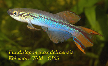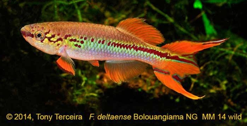 solid line sometimes shown as a row of red spots. Fp.fallax is another sp. often confused & indeed may be involved with historic descriptions. Easily seperated from fallax - deltaensis is a more chunky looking fish with a more flared caudal fin. Also has a line running horizontally through the body whereas fallax has a series of spots. | ||||||||||||