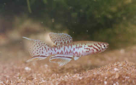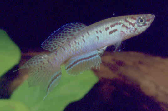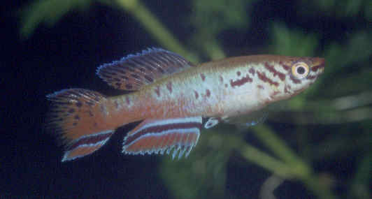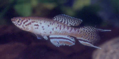 This photo was presented as A.gardneri ('the Fundulus from Togo') in the Aquarist, December 1952 Scheel, in 1955 had his first live individuals of this specis from an import into Holland. These had an irregular caudal fin patterning & were used as brood stock. Some of these young had a 'more or less complete band in the upper portion of the tailfin'. These arrived with Fp.gularis the males of which died en route to Copenhagen. Stenholt Clausen collected the sp. in 1960