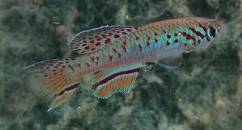 | Diameter of Egg | 1·25-1·35 mm (Scheel). Scheel found that eggs of this sp. do not adhere to anything including peat & mud. This is not seen in other Fundulopanchax or Aphyosemion & is found in Nothobranchius. It would be interesting to study this in Fundulosoma & Pronothobranchius. | |||||||||||||