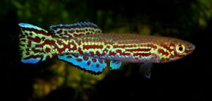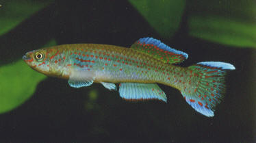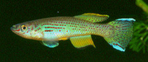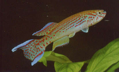 colourful of all gardneri forms. In Wildekamp's book 'Wold of Killies' he remarked the top caudal extension was longer than the lower extension. |