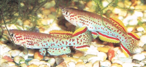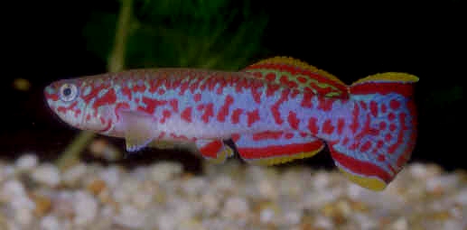 An easy species to breed, laying eggs on top & bottom mops. They will also lay in peat. Eggs are very tough & capable of withstanding fairly long periods of dry incubation. The Lokoja population is well adapted to this capable of dry storage periods up to two months. Other populations will take 4-6 weeks of dry incubation on damp peat. Fry are large enough to take newly hatched brine shrimp on hatching. Scheel found that eggs taking a long time to hatch (resting fry) did so 'depending on the type of water used for the eggs' although he did not say what the types were. See BKA newsletter No.387, December 1997. | ||||||||||