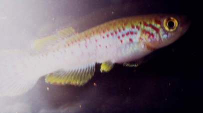 In 1963 J.Arnoult collected a similar looking fish from the Agnebi River system, 85 km north of Abidjan, southeastern Ivory Coast. These were taken back to France. Bruce Turner received live fish from a contact in Ghana at this time & walkeri was again received in the USA. Both strains were reportedly similar. Scheel considered these to be identical with spurelli as written up by Boulenger in 1913. First reports of there introduction into the UK comes in BKA Killi-News No.7 (March 1966) where, on the 17th January of the same year the then A.spurelli was brought over from a visiting German aquarist (unnamed). The sp. was regarded as not being in the country prior to this date. These fish were put into the NSPC (New Species Propagating Committee). Other sp. received from this contact included the then named A.cinnamomeum, A.'burundi' & Cyn.ladigesi. On the 10th July 1970 the BKA received an import from David Blair in Ghana containing a few pairs of walkeri but no population name was given. In 1974 Gerhard Schreiber collected the species near Kutunse & coded them GH 2 / 74. What is not generally known is that he also caught them at Kumasi & gave them the code GH 1 / 74. This code is shared by E.chaperi schreiberi although they were not taken out of the same collection point (personal comments Ed Pürzl / Gerhard Schreiber). Radda collected this species in the Ivory Coast in December 1977 Ed Pürzl searched the Bokitsa Mine area in March 1978 but found no Fp.walkeri as this time of year is the dry season in this area. History of the synonym Fundulus spurelli Boulenger 1913 Boulenger described this