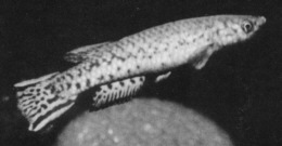 overall body colour. Females have clear unpaired fins but these have a greenish/yellow colour. The dorsal fin contains red spots. Scale edges are dark brown forming a pattern. An irregular line of red spots runs horizontally along the length of the body. |