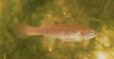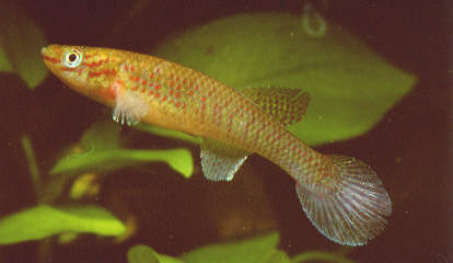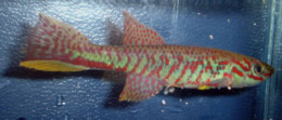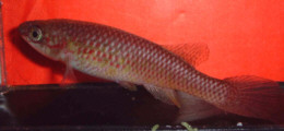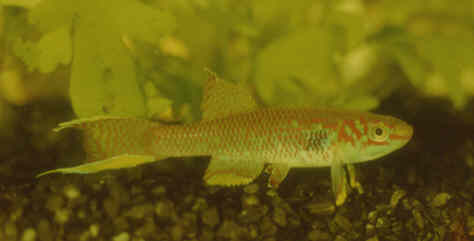 with a thin layer of peat & a lot of Java Fern. Diapause has been reported up to 15 months in unhatched embryo's. Growth rate is rapid with a size of 2 cm being attained after 30 days. Males have been known to start colouring up at 35 - 45 days. Females are able to produce eggs at 2 months of age. (BKA newsletter No.210, February 1983). Jaroslav Kadlec in BKA newsletter No.431, August