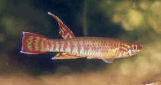 | Distinguishing Characteristics | Distinguished from A.elberti by its squarer looking (less flared) caudal fin. The dorsal fin can become quite long & pointed in older males. Their is a tendancy for the caudal fin to have a thick red submarginal band from the upper caudal peduncle then vertically down the back of the fin returning to the lower caudal peduncle. This is not seen in every population & this characteristic can also be seen in certain populations of A.elberti. | ||||||||||||||||||||||||||||