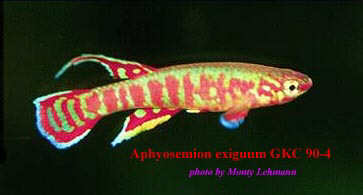 In 1966 Scheel collected them in wooded areas of the inland plateau of eastern Cameroon. In the 1960's Dr.Benigno Roman of Madrid received collections from Equatorial Guinea. Results of his studies were published in'Los Peces de Rio Muni'. Barcelona. 1971. p165. Mention is made in the book of a location 'Cuenca del Miyogo, afl Monyoga el 10/8/1966'. This means an area of Miyogo in a stream/water course of the Monyoga drainage. Known to be in the BKA in December 1966. These were sent by Leif Christensen of Denmark & were breeding at one & a half inches. They were described as having a 'yellow body with a pattern of reds & browns'. Also came into the UK through the BKA Species Import Committee late 1968 & June 1974. Collected by Roger Langdon north of Sangmelima (Cameroon) in 1971. Scheel collected at Lolodorf in 1974. Rod Roberts along with 7 Austrians & a Frenchman collected in Cameroon in July 1983 (K/N 228). Rod's group also comprised Ed Pürzl & Hubert Peturka. A population was caught at Febmimbang. This population was distributed in the UK in limited numbers. In January 1986 P.Wagner & R.Wendel found this species in Gabon for the first time. History of the synonymous A.jacobi. Jacob, in 1928, collected 4 specimens from the Lokundje River, Lolodorf, southern Cameroon. This locality is 440 metres above sea level. These were examined by Ahl & used to name the species Panchax jacobi. History of the synonymous A.jaundensis. Ahl described Panchax jaundensis in 1924 from a single female collected at Jaunde, east Cameroon. Holly studied the type material in 1930 & changed some of Ahl's data. History of the synonymous Panchax loboanus. Ahl, in 1924, used a single specimen collected by Schreiner at the upper reaches of the Lobo River, Sangmelima, southern Cameroon. In 1930 Holly re-examined the type specimen & changed some of the meristic data given by Ahl. History of the synonymous Panchax loloensis. Jacobs caught 4 specimens at Lolodorf, eastern Cameroon which Ahl used in 1928 to describe the species. Lolodork can be found on the Lokundje River north of Kribi & south of the Nyong River. Lolodorf is 440 metres above sea level. | ||||||||||||||||||||||||||||