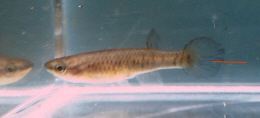 however produced a greater number of fish for distribution. I have found this sp. a little more difficult to spawn & never had more than a few eggs. A dark tank should be used for breeding. Reports suggest that a water change using clean rain water has induced the fish to spawn, although they are not a prolific sp. Eggs are laid mainly in floating mops or vegetation & take 2-3 weeks to hatch. Water incubation is around 10-15 days. Parents are reportedly avid egg eaters (some reports state they are not, & fry go unmolested). Fry can be hard to rear & do best in water from the parents tank which is shallow (2-3"). Fry are small & do best on infusoria for a few days. Water changes should be carried out with extreme caution. Old water would seem to be the key to success with raising this sp. They seemed to dislike harder water of DH10+. Fry are slow to mature & start to sex out in 3-4 months but full sexual maturity is not attained until they reach around 8 months.. In BKA newsletter No.70, June 1971 a dark breeding tank was used with a layer of peat on the base & floating plants. A handful of rotting sphragnum moss was also added. Water temperature 72-74° F, pH 6·6-6·8, DH 2-7. Collecting eggs from mops was not successful as they turned fungussed. It was found more successful to breed them in a natural setup & let fry hatch in the parents tank. One report in BKA newsletter