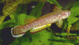 We had this sp. briefly some years ago but failed to reproduce it. It is reportedly a very difficult sp. Males are aggressive. Eggs are layed on the bottom in very shallow tanks (with high oxygen content?). Eggs reportedly take 12-16 days to hatch. Growth rate is slow with sexual maturity not being attained until they reach 8-10 months of age. Friedrich Bitter (BKA newsletter No. 303, Dec 1990) reported that fish should be kept in shallow water with the bottom covered with peat fibre. Fry will appear in the tank if the parents are kept well fed. He reported that this sp. is not prolific. |