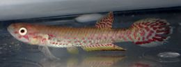 Difficult to confuse this sp. with any other Aphyosemion sp. They are long, elongated in shape & have great difficulty in swimming in mid water, always sinking rapidly. In the wild they are regarded as Mudskippers. Colouration wise the caudal fin has a wide outer margin at the bottom & a smaller outer margin at the top. |