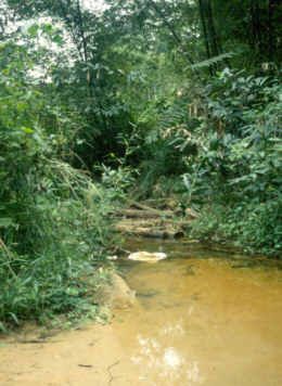 Given as small rivulets in rainforest swamps. The type locality was described as being a marshy area belonging to the Nyanga River drainage at an elevation of 400 metres above sea level. Mogens Juhl sent me an E-mail stating that he collected this sp. in abundance at GJS 00/14 - Malinga. Water temperature was 21·1 C, pH 5·9 and conductivity 1 microseimens. This location had a depth of only 2 cm. Also found were many small barbs and a new (?) Ctenopoma from the Ct.nanum-complex. | ||||||||||||