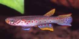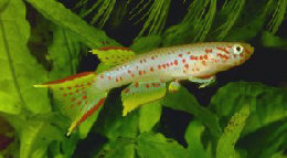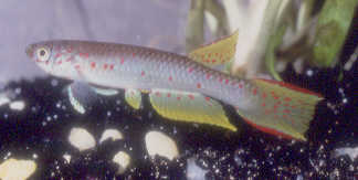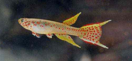 Both sp. are seperated geographically. A.polli has few spots on body & unpaired fins. Red outer margins to dorsal & top/bottom of caudal fin. |