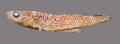 | Distinguishing Characteristics | Distinct from others in the elegans group in having a black (probably - this is brown in preserved specimens) outer margin to all fins in males, a robust jaw, large head with large eyes, dorsal fin set further back down the body. |