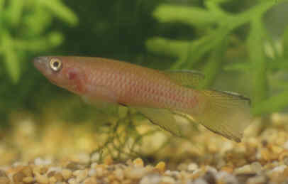 Wild males can be aggressive. Wildekamp's line drawing (A World of Killies Vol III) of a specimen collected to the southwest of Kumasi shows four vertical bars to the rear of the body. The CI 9 / 93 collection I had never showed any barring. |