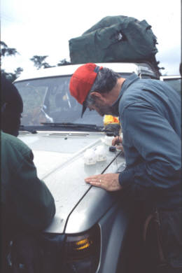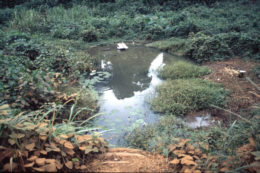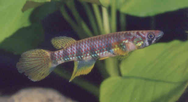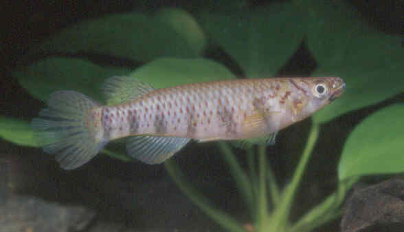 rivers on the southwestern slopes of the Du Chaillu Massif. PEG 93/2 - Stream 1·5 m wide & 20cm deep. Clear, slightly brownish water. No measurements of water taken but this other areas in this vicinity measured 30-50 µ S, temperature 23-25°C, pH 6 - 6·7. Sympatric sp. in this location - (A form of) A.exigoideum, Plataplocheilus cabindae, Barbus sp.. Plants (Aponogeton sp.) were found in the stream as it was open to daylight by the roadside. | |||