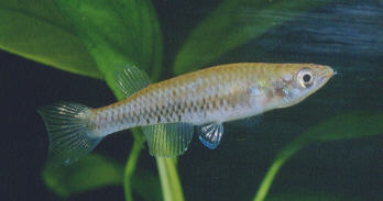 I only had this species once & found it difficult to breed, only laying a few eggs in mops. They hide a lot & a darkened tank suits them best. Reports suggest that the pairs will not harm eggs or fry in the breeding tank. Water incubation is 12-15 days. Fry will take newly hatched brine shrimp on hatching. Growing the fry is difficult (I didn't manage to raise any) with sexual maturity taking at least around 8 months. |